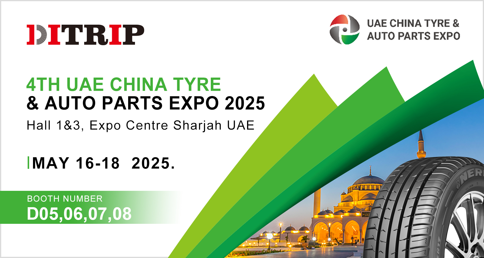 Ditrip Tyre will attend this exhibition as one of leading tyre suppliers in China, specializing in passenger car tyres and truck tyres (1200R24, 315/80R22.5…) with GCC and SASO certificates.
